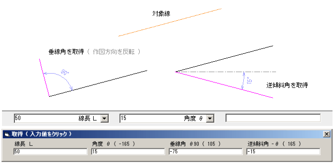 | 数値のリセットは、項目名 ( 線長 L ) のクリックです。 |