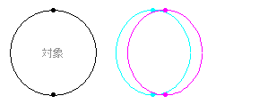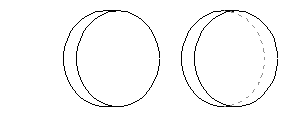 | 円筒貫通穴の回転投影図 ( 右側は 外径と内径を円柱の径として2回作図後 隠れ部分を除外 ) |
