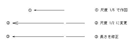 | ※ 尺度変更に伴って矢印の長さも変化します。必要に応じて修正ください。< 参照 > |
