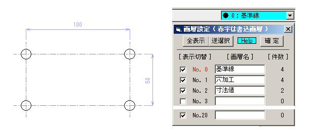 作成データは 画層別に区分されます。( 寸法を同じ画層に作成すれば 寸法のみの表示・非表示が